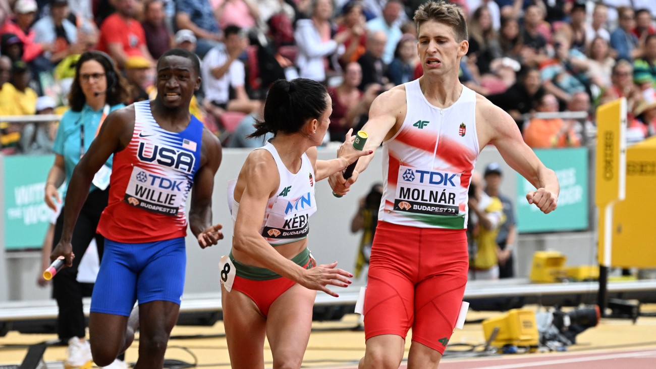 A magyaroknál az idén 44.98-as magyar csúcsot elérő Molnár Attila kezdett, egészen parádésan. Az FTC sprintere már a rajttól hatalmas iramban futott és végül minden riválisát, így az amerikai első embert is megelőzve az élen váltotta Kéri Biankát. A 800-as középtávfutó az első kanyar után, a bevágásnál a 3-4. helyig csúszott vissza, a folytatásban viszont a közvetlen riválisok iramát tartotta és ötödikként váltotta Wahl Zoltánt, aki szintén jó teljesítménnyel teljesítette a maga körét, negyediknek adta át a botot a gátas Molnár Jankának.