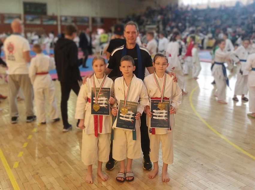 A Sziget kupán Grudzinski Zsolt vezérletével a Tokui dojo tanítványai, a Nagy Lajos Király Általános Iskola növendékei vettek részt. Kovács Elina és Budai Blanka is nyerte mindkét meccsét a Shino katával a 10-11 éves lány kata C kategória versenyszámban, ezzel mindketten aranyérmet szereztek. Kazai Bendegúz szintén két nyert meccs után, első helyen végzett a Seizan és a Heiku katákat bemutatva - tájékoztatta lapunkat hétfőn a miskolci Justitia Fuji-Yama SE.