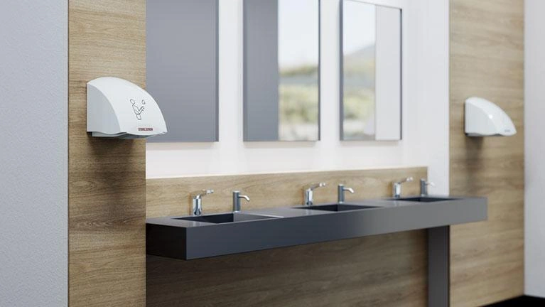 A nagy forgalmú, sokak által használt helyeken, nyilvános mosdókban különösen fontos a kézszárítás gyorsasága. A STIEBEL ELTRON meleg levegős kézszárító készülékei gyengédek és higiénikusak, de igény szerint szupergyorsak vagy halk üzeműek is lehetnek, így minden környezetbe alkalmasak.