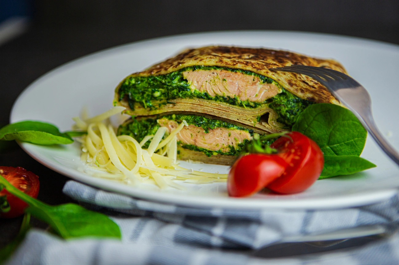 Netán egy laza halas fogásra áhítozol? Akkor pedig a Lazac-Wellington a Te választásod, melyben egy roston sült, spenótos sajtkrémmel kent lazac takarózik ropogósra sütött palacsintába.