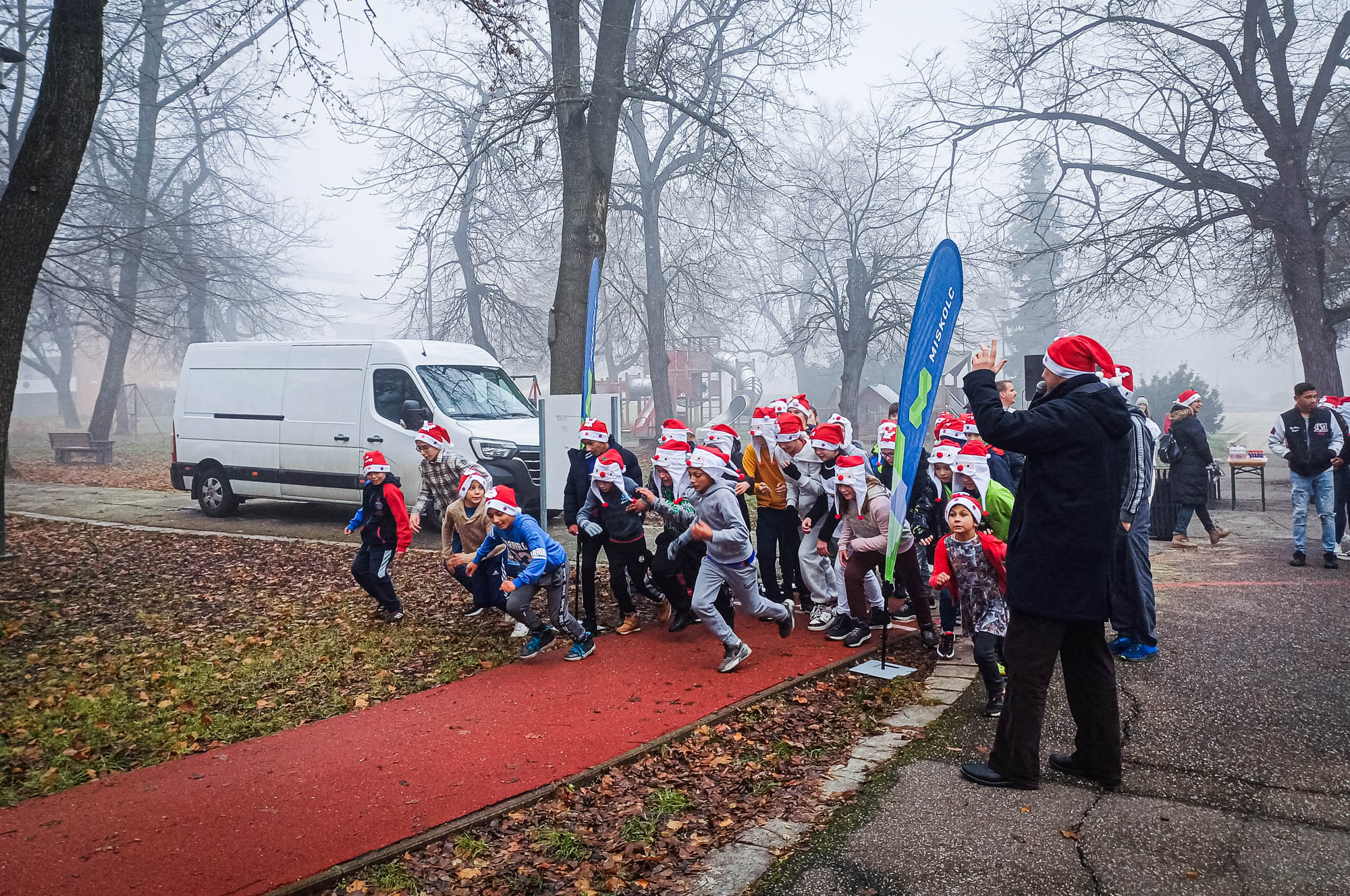 Négy intézmény diákjai futottak a Mikulásért: a Miskolci Szabó Lőrinc Általános Iskola, a Gyarmati Dezső Sport Általános Iskola, a Bulgárföldi Általános Iskola és a Nyitott Ajtó Baptista Általános Iskola tartott „kihelyezett tesi órát”.