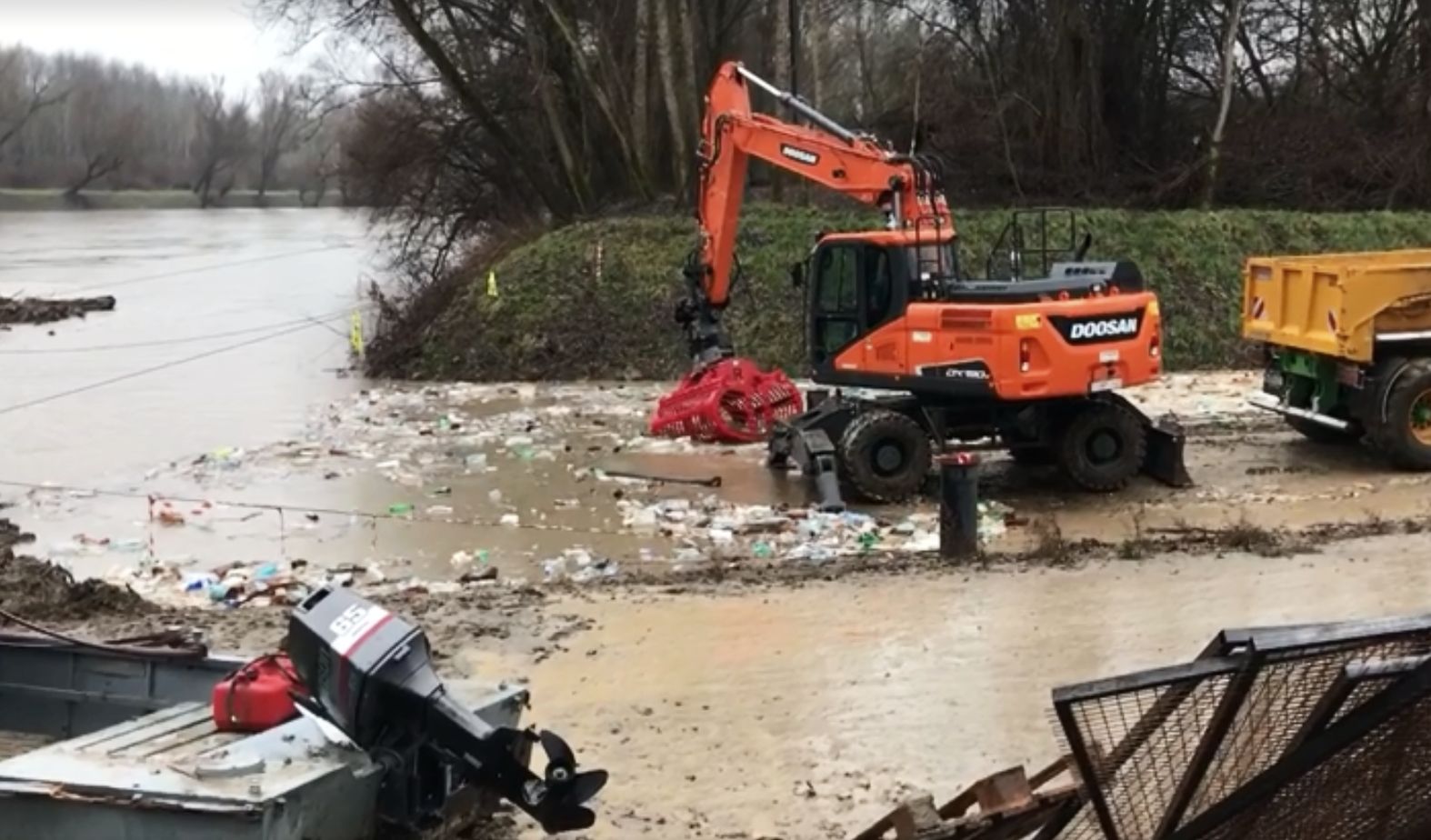 A Felső-Tisza-vidéki Vízügyi Igazgatóság vezetője a hulladék eltávolítása érdekében csütörtök 14 órától harmadfokú vízminőségi kárelhárítási készültséget rendelt el, ennek során géplánccal távolítják el a folyón érkező PET-palackokat és egyéb kommunális hulladékot.