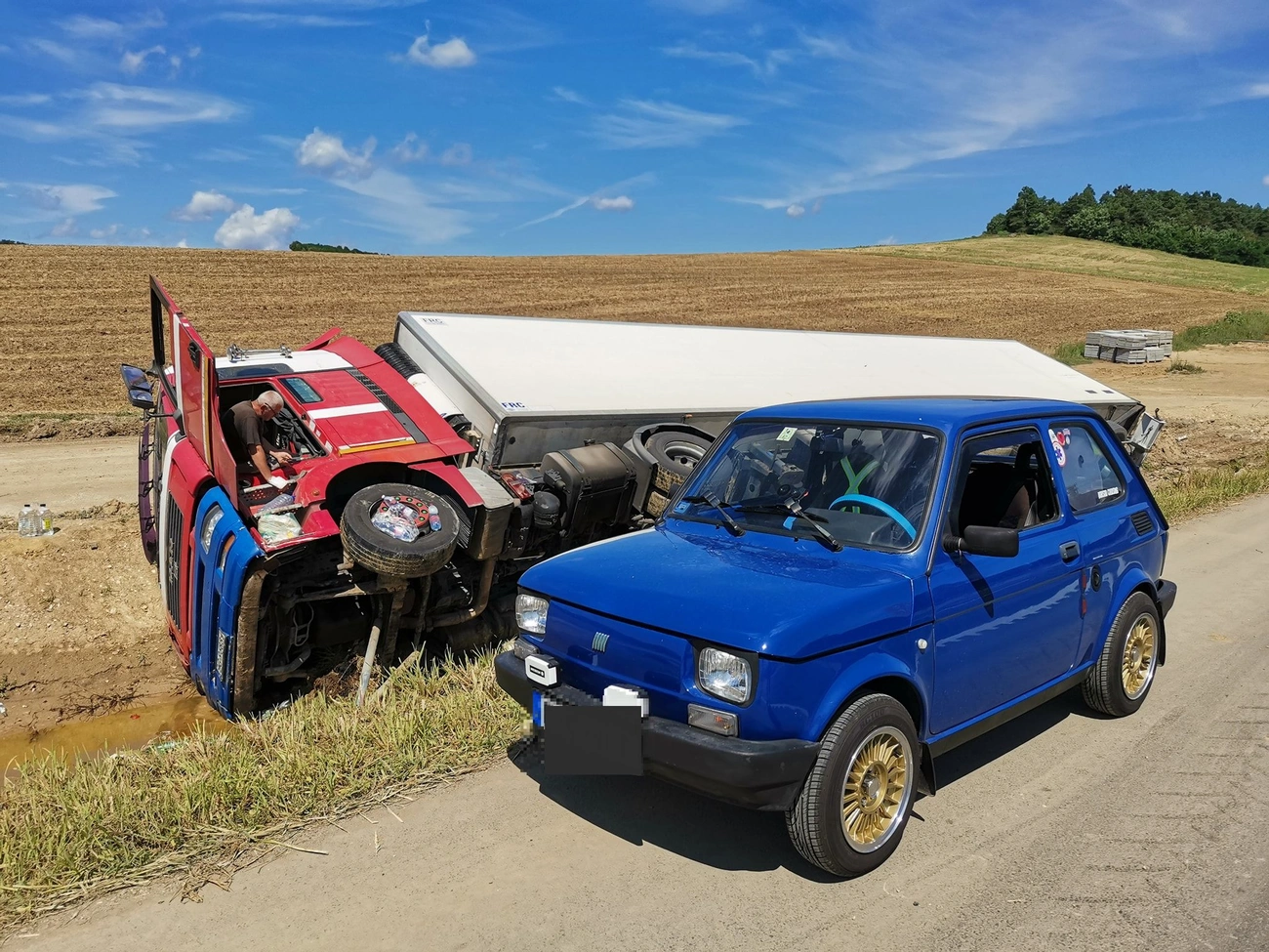 Az RTL Klub Híradó riportjából kiderült, a kamion paradicsomot szállított volna Lengyelországból Bulgáriába, állítólag a sofőr a kamion tulajdonosa. Az autópályánál dolgozó munkások szerint nincs pénze arra, hogy kiemeltesse a kamiont. Két lengyel kamionsofőr is a helyszínen volt, ők úgy tudják, a férfinek van biztosítása és Lengyelországból várja a kamionmentőt, amit egyelőre nem engedtek át a határon.