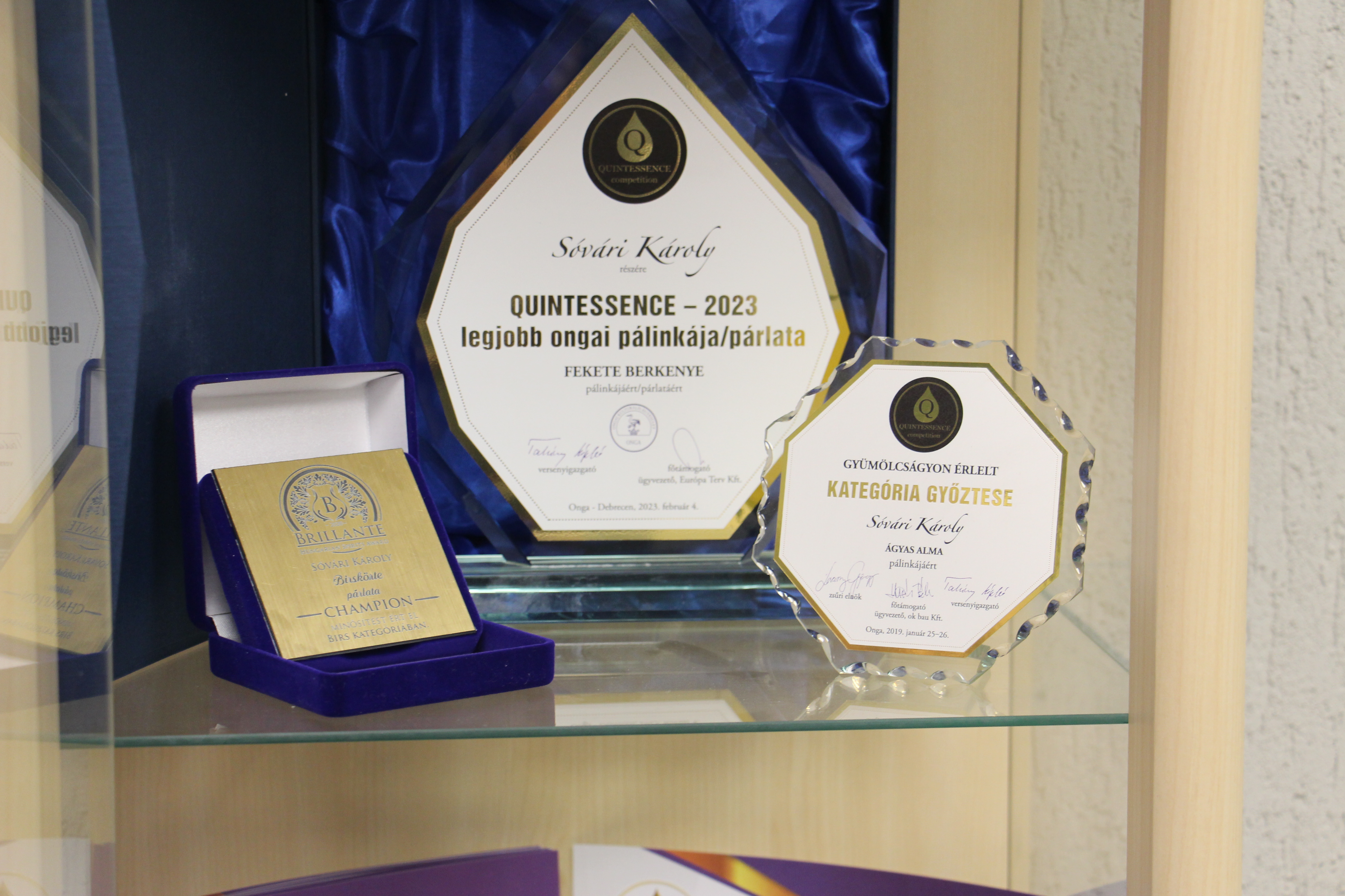 A XIII. Quintessence Pálinka-és Párlatversenyre 1763 minta érkezett 230 nevezőtől, 153 településről. A Kárpát-medence legnagyobb pálinka seregszemléjét február 4-én a debreceni Kölcsey Központban tartották. Az eredményhirdető gálán a nemzetközi bíráló csapat véleménye alapján "QUINTESSENCE - 2023 legjobb ongai pálinkája/párlata" címet Sóvári Károly Fekete berkenye pálinkája érdemelte ki.