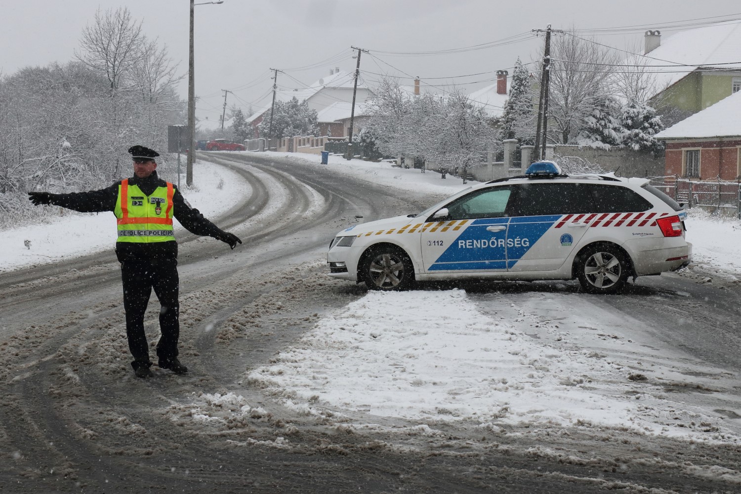 A baleset helyszínén, az Esze Tamás utcában teljes szélességében lezárták az utat.