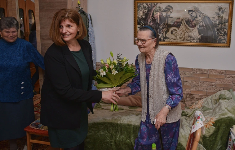 Virágos jó kedvvel fogadta a születésnapi köszöntést Erzsike néni