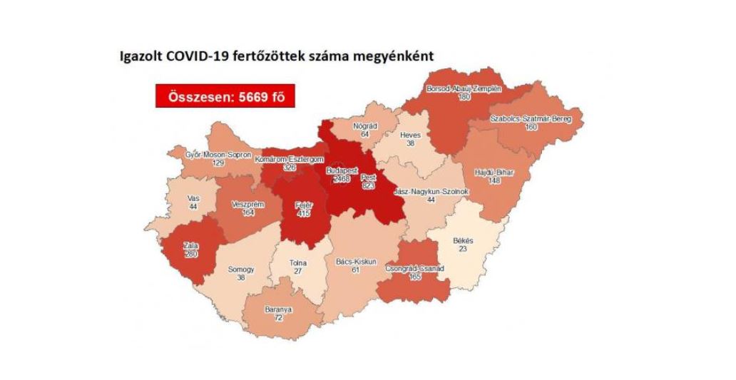 A kormányzati portálon azt írták: a 158 új beteggel 5669-re nőtt a Magyarországon eddig beazonosított fertőzöttek száma, az aktív fertőzöttek száma 1296 fő. Az elhunytak száma változatlanul 614, 3759-en már meggyógyultak. Hatósági házi karanténban 8191-en vannak, és 417 890 mintavétel történt.