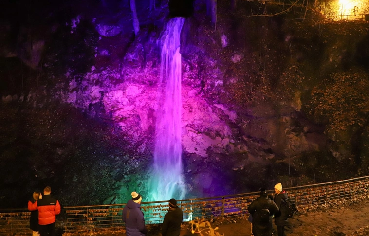 Adventi fények festik a lillafüredi vízesést