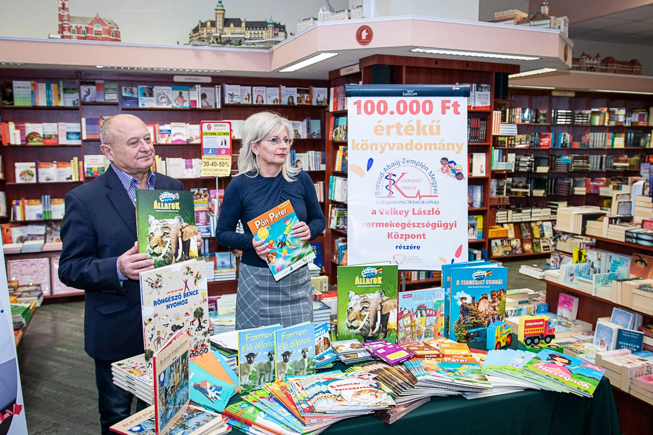 Kondás Vilmos, a Géniusz Könyváruház tulajdonosa elmondta, negyvenötezer könyvcímből választották ki azokat, amiket a kórházba szántak. – Van közöttük kifestő, foglalkoztató, mesekönyv, kétnyelvű és ismeretterjesztő is. Megtudtuk ugyanis, hogy több korosztály is van a kórházban. A könyv pedig mindig örök marad, az olvasás lélekgyógyító és munkára fogja a képzeletünket – mondta, majd hozzátette, igaz az alapítvány mottója, miszerint „Egy ember, aki olvas, ezer életet él... Egy ember, aki soha nem olvas, csak egyszer él.”