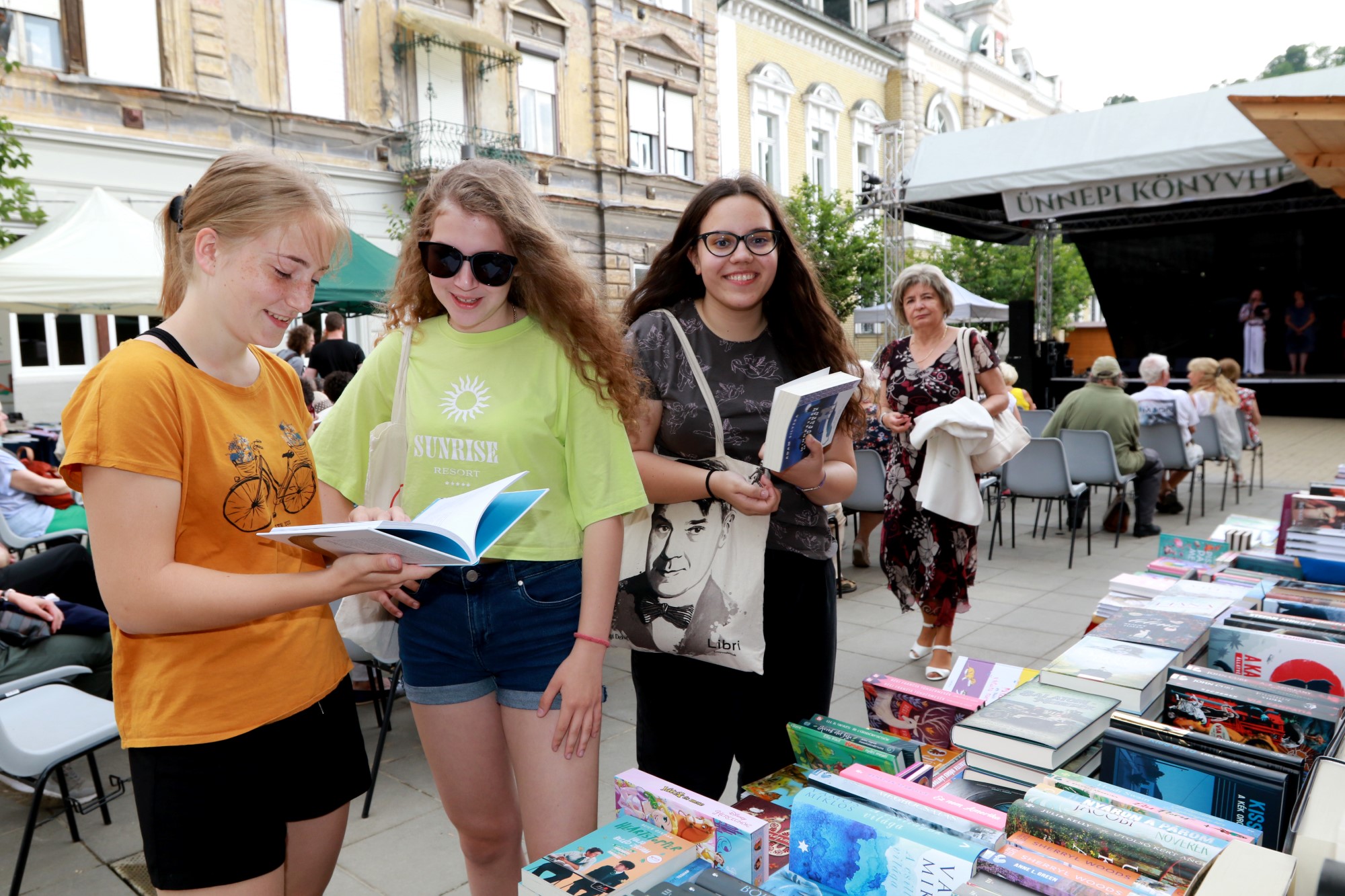 Elkezdődött a 93. Ünnepi Könyvhét és 21. Gyermekkönyvnapok: pavilonok költöztek az Erzsébet térre, és hegyes tetejű sátrak, mint könyvkastélyok emelkedtek a térköveken. Az Agyagbanda prémium folk buli zenével csábította be a sétálókat, még az eső is lelógatta a domb alá a lábát, úgy figyelt. Az utóbbi körülmény ellenére szép számmal gyűltek az érdeklődök: könyvárusoknál lapozgatták az év sikerköteteit, különböző életekbe buktak alá egy-egy oldal erejéig, majd emelkedtek ki belőle, hogy egy másik történetbe csobbanjanak.