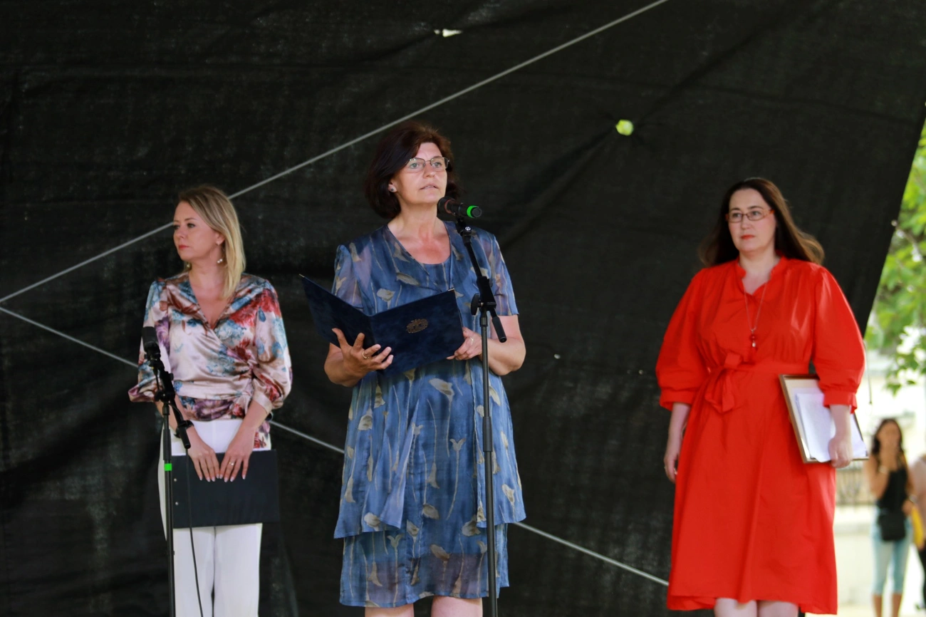 Ahogy az Agyagbanda befejezte a zenélést, sokan gondolták úgy, hogy az eső fog rákezdeni. A zuhé szerencsére – többnyire – elmaradt, ehelyett a színpadon kezdődött el az Ünnepi Könyvhét szintén ünnepi megnyitója, amelyen először Varga Andrea alpolgármester idézte fel a rendezvény eredetét.