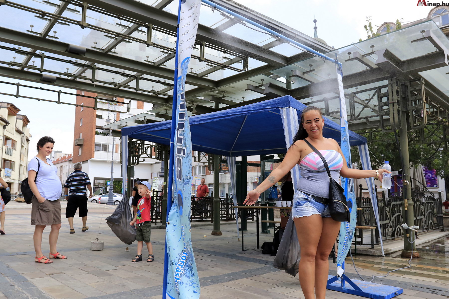 A MIVÍZ Kft. munkatársai ivóvizet osztanak csütörtöktől vasárnapig, 10 és 16 óra között a Villanyrendőrnél, a Centrum Áruháznál és a Búza téren. Ezeken a helyeken párakapukat is felállítanak.