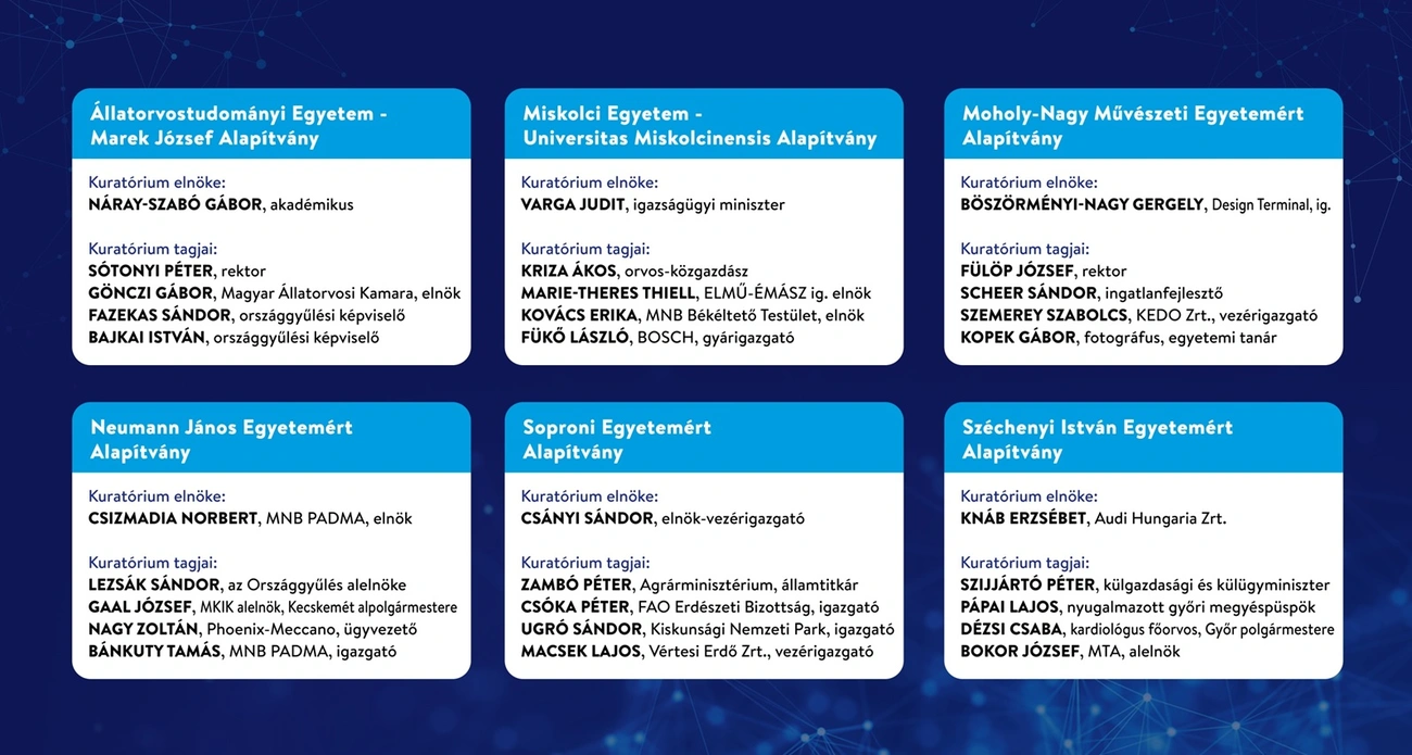 Az Universitas Miskolcinensis Alapítvány tagja lett Kriza Ákos orvos-közgazdász, Marie-Theres Thiell, az ELMŰ-ÉMÁSZ igazgatóságának elnöke, Kovács Erika, az MNB Békéltető Testületének elnöke, valamint Fükő László, a Bosch gyárigazgatója.
