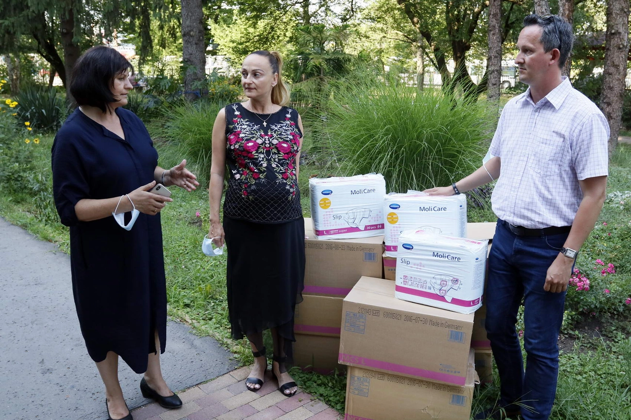 Negyven doboz érkezett az Őszi Napsugár Otthonba a Hartmann-Rico Kft.-től, amely többek között beteg- és inkontinencia-ellátáshoz gyárt termékeket tartalmazott. – Minden adománynak nagyon örülünk – mondta Varga Andrea Klára alpolgármester. – Főleg azoknak, amelyek hiánycikkek pótlására szolgálnak. Most egy tízmillió forintos adományt kapott a Miskolci Egyesített Szociális, Egészségügyi és Gyermekjóléti Intézmény, valamint a Borsod-Abaúj-Zemplén Megyei Központi Kórház és Egyetemi Oktató Kórház. Ahhoz, hogy a szociális ellátásban gondozottak számára el tudjuk juttatni a dobozokat, a miskolci polgármesteri hivatal is segítséget nyújtott – mondta az alpolgármester, aki egyúttal megköszönte az eddigi legnagyobb értékű adományt Ignácz Viktóriának, Miskolc Megyei Jogú Város Ukrán Nemzetiségi Önkormányzat elnökének.