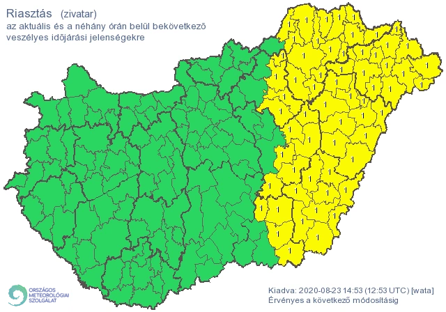 Az Országos Meteorológiai Szolgálat honlapján azt írja, hogy délután, este kiemelten az északkeleti országrészben (Borsod, Heves, Zemplén, Nyírség) szórványosan, illetve az Alföld keleti felén (főként a Tiszántúl középső és északi része) helyenként várható zivatar.