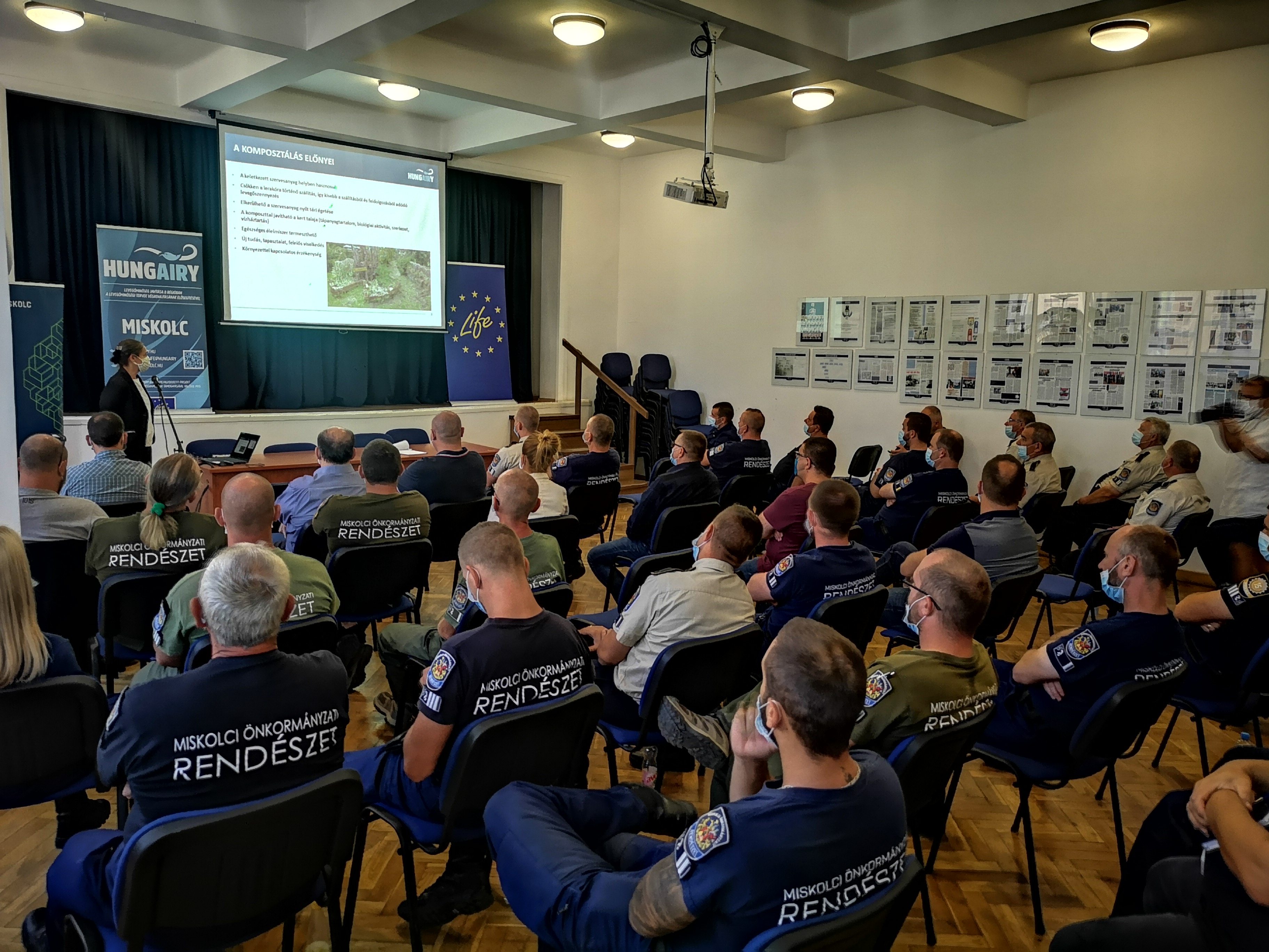 A szabályozás betartását a Miskolci Önkormányzati Rendészet ellenőrzi és felügyeli. Az állomány továbbképzése érdekében a LIFE IP HUNGAIRY projekthez kapcsolódó Ökomenedzser Iroda munkatársai a Rendészet szakmai napján tájékoztatót szerveztek az égetésekkel kapcsolatosan. A fórumon szó esett többek között a levegővédelmi intézkedésekről és jogszabályokról, az égetés egészségre gyakorolt káros hatásairól, valamint a jogsértő magatartást gyakorló állampolgárok felelősségre vonási lehetőségeiről. Kiemelt figyelmet és hangsúlyt kapott több előadásban a komposztálás, mint zöld hulladék kézenfekvő hasznosítási módja. Külön felhívták az előadók a hallgatóság figyelmét a komposztkeret igénylési lehetőségére és a komposztálás helyes gyakorlatára, mely közvetett módon is hozzájárul Miskolc levegőminőségének javulásához.