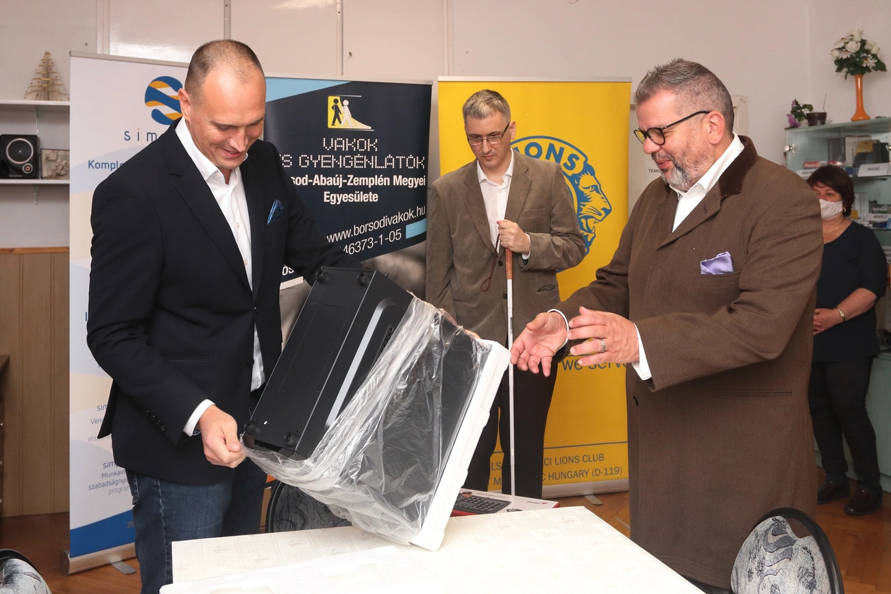 - A látássérültek önálló életre való törekvését könnyítik ezek a számítógépek: hozzájárulnak az egyesület működéséhez, a szolgáltatásainkhoz, és ahhoz, hogy a megváltozott munkaképességű dolgozóink könnyebben végezhessék el feladatukat – nyilatkozta lapunknak Barnóczki Gábor egyesületi elnök, aki elmondta, az átvett készülékeket oktatáshoz, a látássérültek informatikai képzéséhez használják majd.