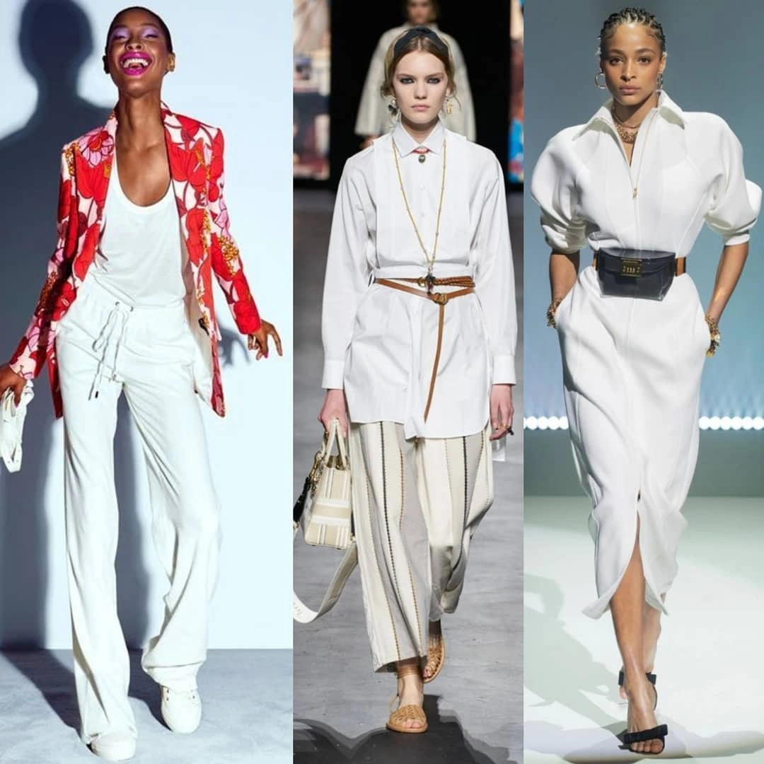 A kifutókon látni lehet még féloldalas megoldásokat: óriási arany vagy színes fülbevalót, de csak az egyik fülben, vagy csak az egyik váll van ki a ruhából.