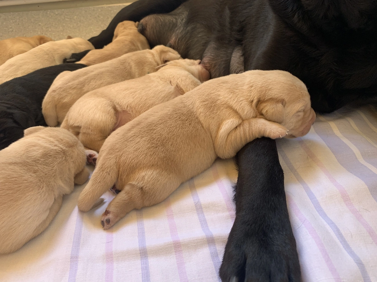 Összesen egy fekete és hét sárga labrador született a T-betűs alomban. Három fiúcska lett, az egyetlen fekete kölyök kislány. Marton Mónika kölyöknevelőt arról kérdeztük, hogy mi történt az elmúlt két hét alatt. Móniék rutinosak már, hiszen tenyészprogramban másodszor kísérik végig Calgaryt a vemhességen, ellésen, kölyöknevelésen át.