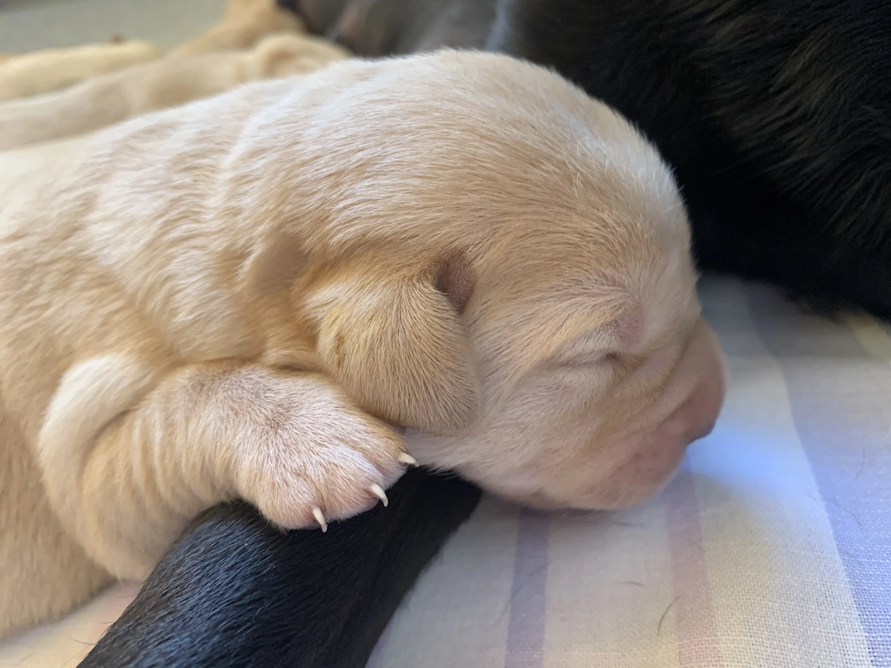 A sárga babák nagyjából egységes színűek, 1 lányka kivételével, aki ugyanolyan világos, majdnem fehér színű lesz, mint korábban Rizling és Rozé. Az egyetlen fekete leányzó aktív kiskölyök, szereti a hasát, és szívesen bújik fekete mamájához alváskor.