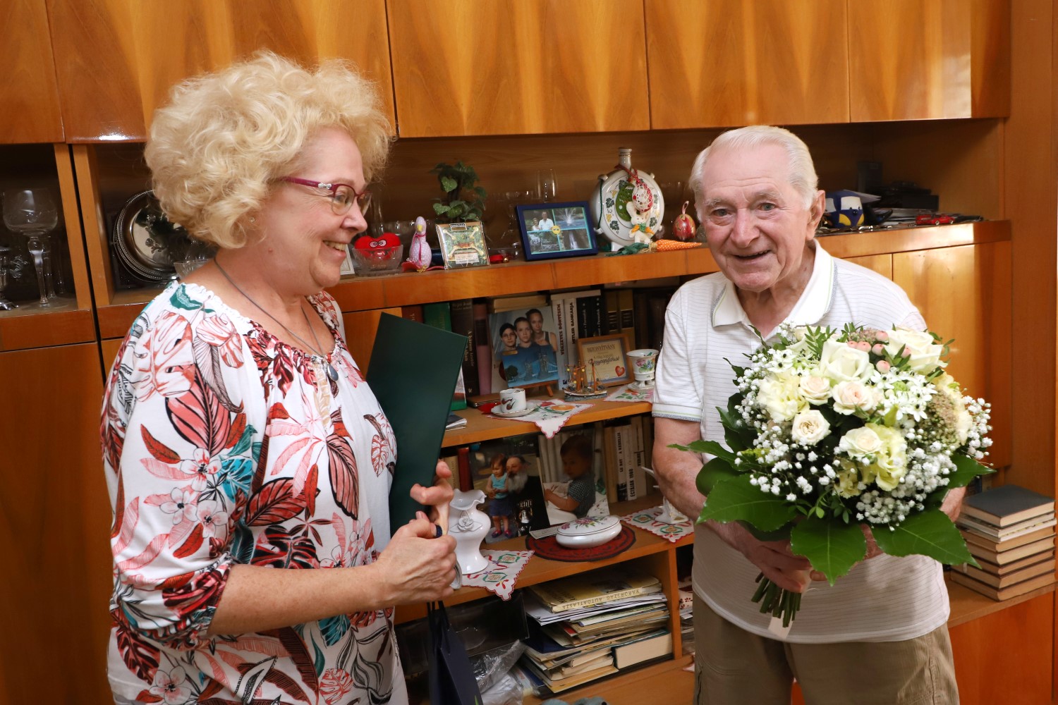 Józsi bácsi lányával fogadta lakásában Szomorné Takács Tündét, a polgármesteri hivatal lakosságszolgálati főosztályának csoportvezetőjét, aki az önkormányzat ajándékcsomagját, virágot, valamint egy, Orbán Viktor miniszterelnök aláírásával ellátott emléklapot adott át a jubileum kapcsán. Józsi bácsi büszkén tartva az oklevelet, örömében csak ennyit mondott: „Mit meg nem él az ember öreg korára! No, ezt ki kell bélelni!” Egyikőnk sem értette, hogy vajon mire céloz Józsi bácsi, mígnem a lánya megjegyezte, hogy éppen előttünk ment el a postás, aki a jubileumi juttatást hozta.