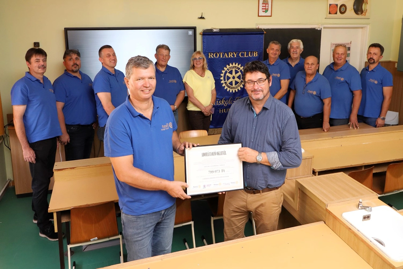 - Ez már a harmadik támogatásunk. A Rotary-n belül működik egy pályázati rendszer, minden évben ezer dollár adományozási összeget kapnak a befizető klubok a központi keretből. Ezt mi kiegészítettük, így vásároltuk meg az eszközt 799.973 Ft értékben – számolt be az adományról Zsúdel Tamás, aki kifejtette, a Rotary Club Miskolc-Tapolca küldetésének alappillérei az oktatás és a tehetséggondozás támogatása: megalakulásától kezdve igyekszik segítő kezet nyújtani az oktatás területén.
