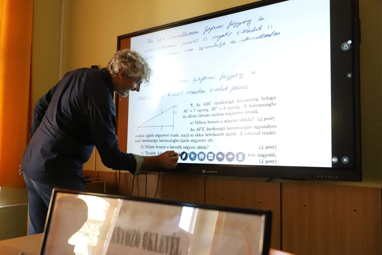 - Jelen pillanatban az a megállapodás él, ha a biológia szaktanteremben nem fogják használni, akkor más helyet találunk neki, ahol nagyobb hasznát veszik majd az oktatóink. Nem szeretnénk egyelőre kötelezővé tenni az info-kommunikációs eszközön történő munkát, de akad több olyan lelkes kolléga is, aki nyitott a technika megismerésére. Úgy vélem a tábla kihasználtsága, és az adott terem befogadóképessége adja azt a keresztmetszetet, ami megmutatja majd, hol lehet leginkább bevonni a táblát az oktatásba.