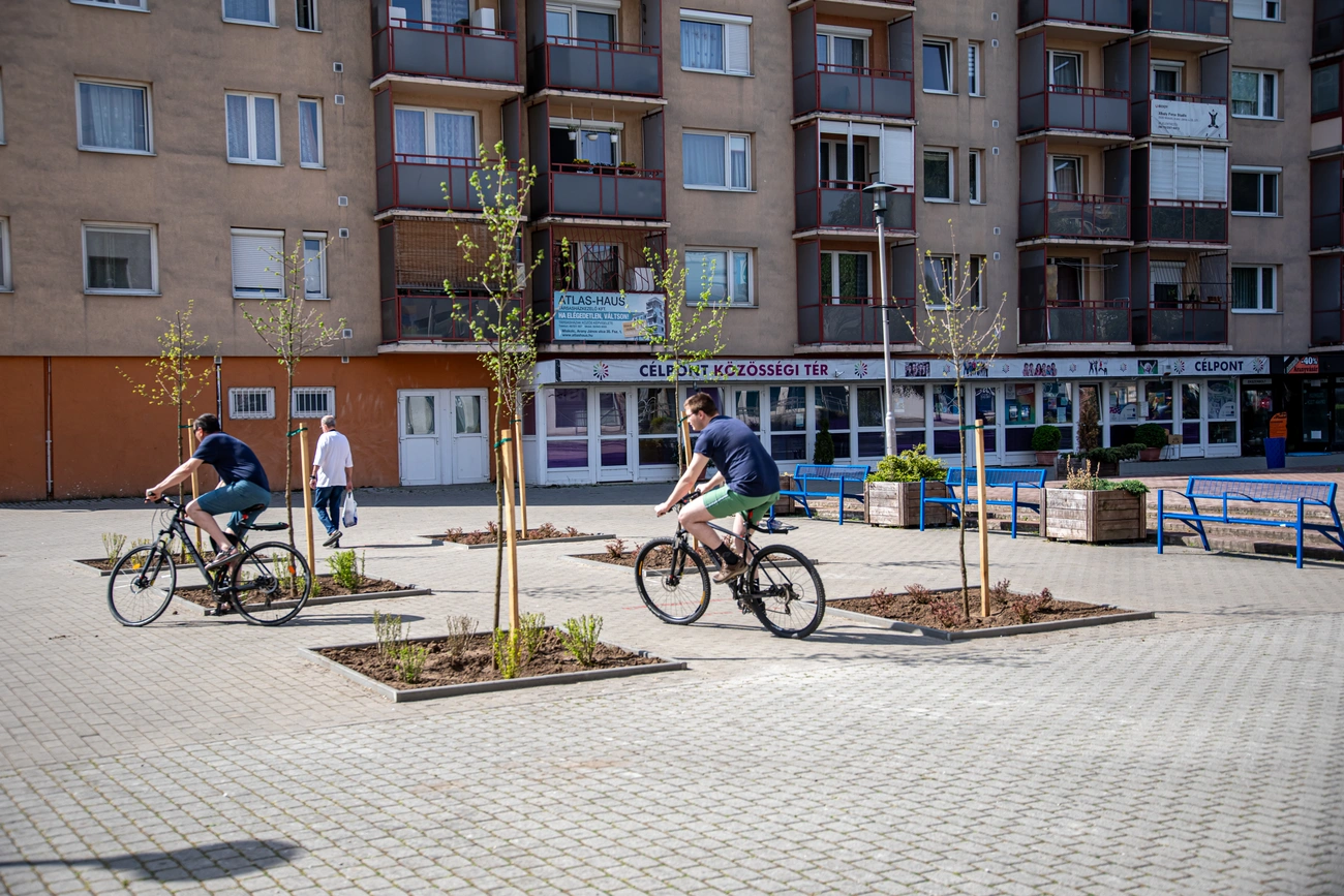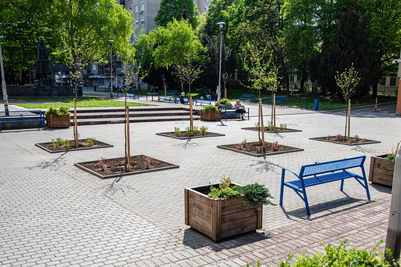 Előzetesen aggályokra adott okot, hogy nem volt pontosan ismert, milyen közművek futnak a betonfelület alatt, azonban a kivitelezés során sikerült ezeket elkerülni. Összesen 12 fa számára jött létre hely, ahová kifejezetten olyan fákat ültettek be, amelyek szárazságtűrő és melegkedvelő fajok: 4 darab gömbkőris, 6 darab mezei juhar és 2 darab selyemakác leltek új otthonra - részletezték.