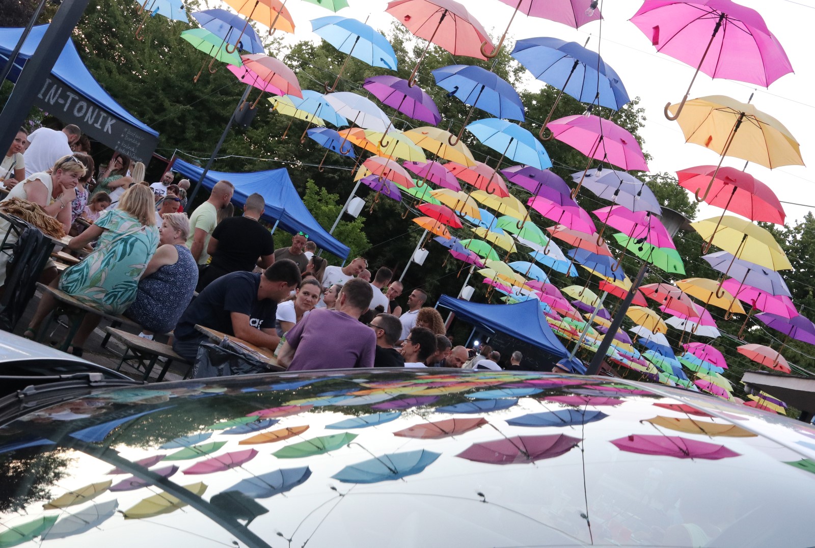 A Gasztro Centrum Terasz Buli – 2025. jó ízeket és igazi nyár esti hangulatot ígértek és ezt be is tartották. A finomságoké és a jókedvé volt a főszerep. Erről többek között a Borsod Burger, a Pizza Time és a Bolyki pincészet gondoskodott. Volt még krumplilángos, Gin&Tonic, világítós lufik és az elmaradhatatlan számtalan színes esernyő a fejek fölött.