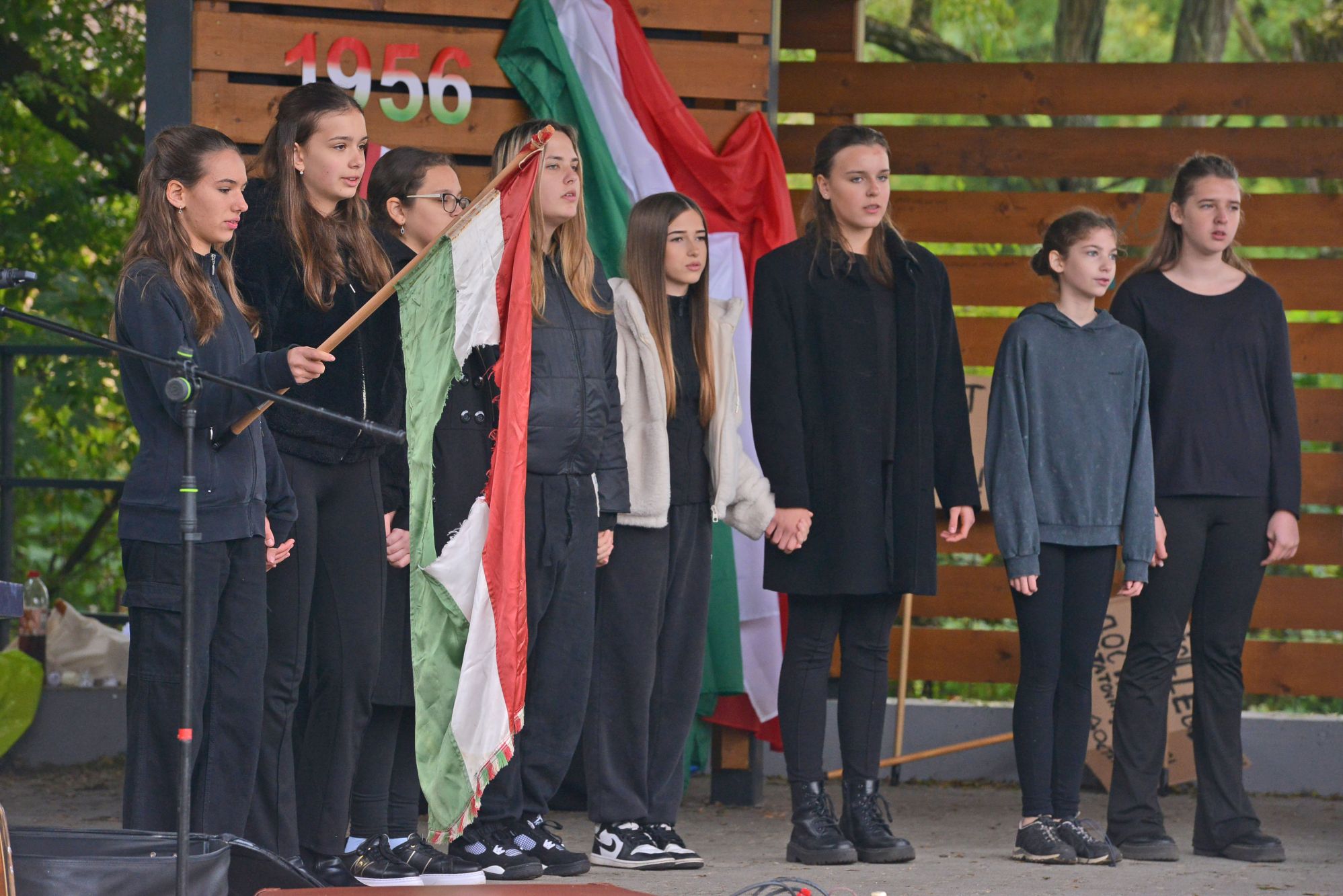 A Görömbölyi Általános Iskola hetedikes tanulói korhű jelmezekben, a történelmi fotókról ismert jelszavakkal teleírt táblákkal, egy rendkívül érzelemdús, felkavaró előadással nyitották meg Miskolcon, a görömbölyi városrészben az ’56-os megemlékezés műsorát.