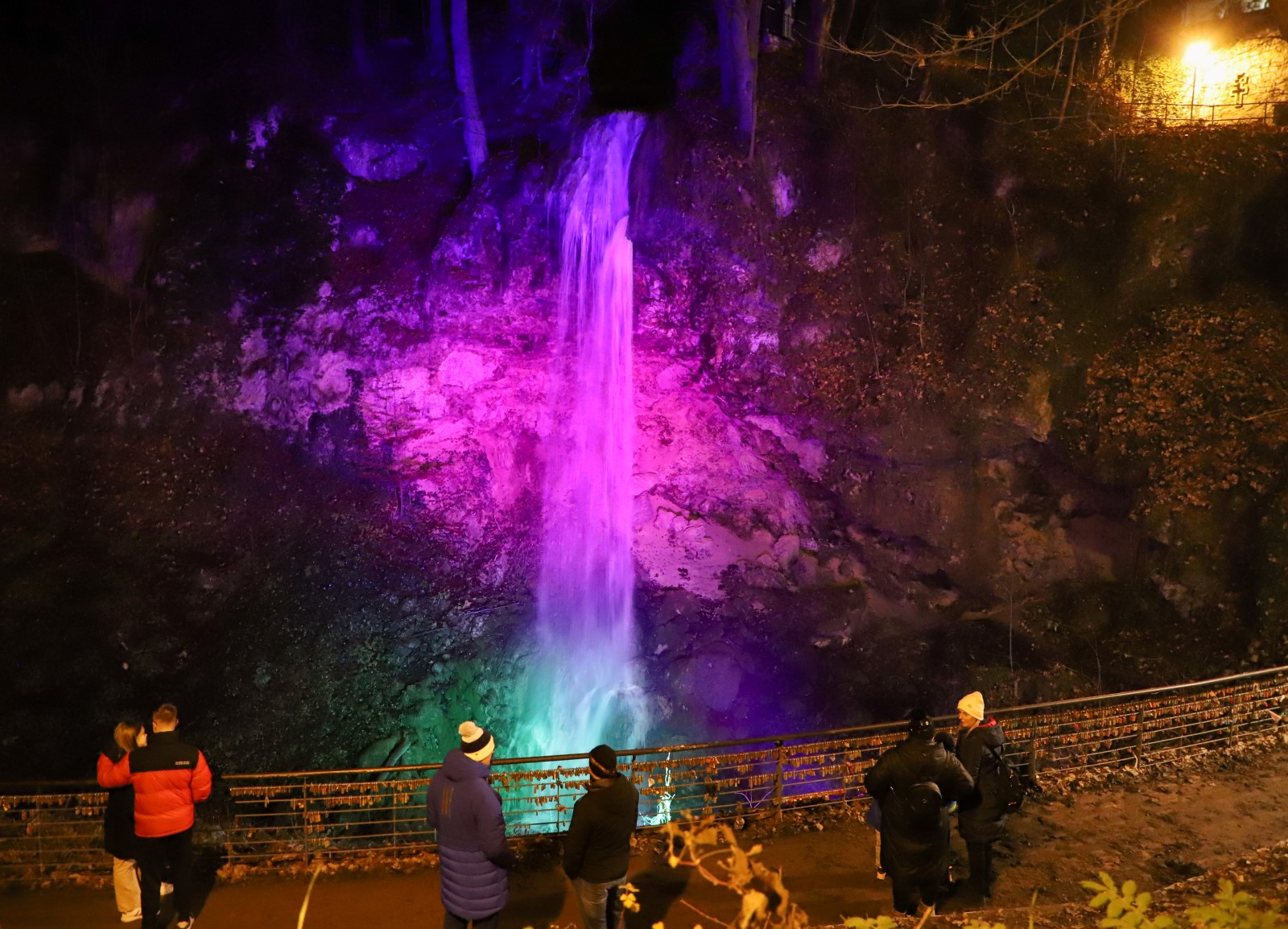 Adventi fények festik a lillafüredi vízesést