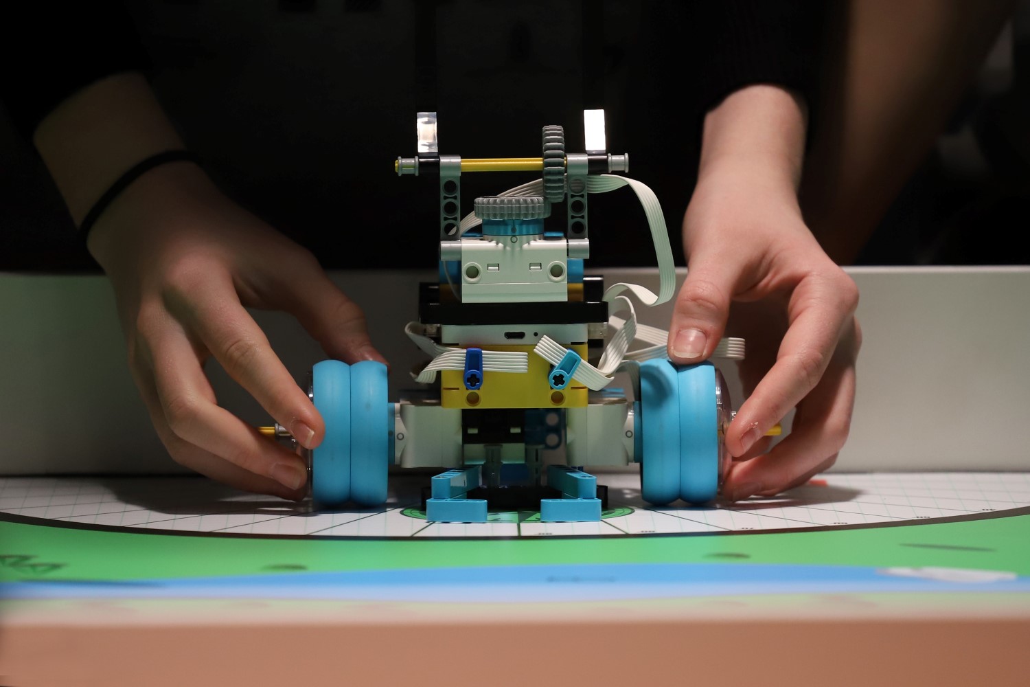 • A First Tech Challengeben a versenyzők saját építésű robotokat mutatnak be, amelyek műszaki megoldásait és a versenypályán mutatott teljesítményüket pontozza a zsűri.