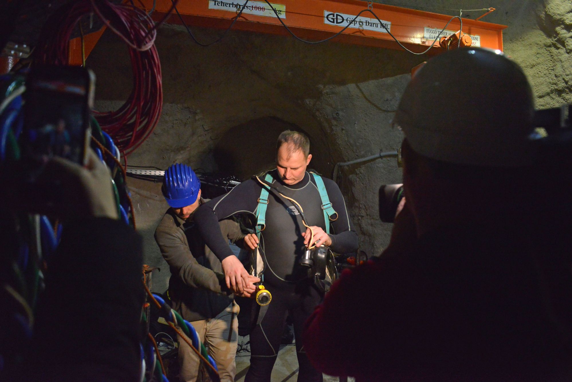 És hogy miért mentek oda? Dolgozni. A termálkút tisztítását, a benne lévő gépészet karbantartását minden évben elvégzik ezek a bátor emberek, hogy a Barlangfürdő vize kristálytiszta legyen és veszélytelen a fürdőzőkre. A nagyszabású helyreállítást végző cég előrejelzései szerint a hamarosan következő szezon második felében a fürdőzésre ismét lehetőségük nyílik a vendégeknek.