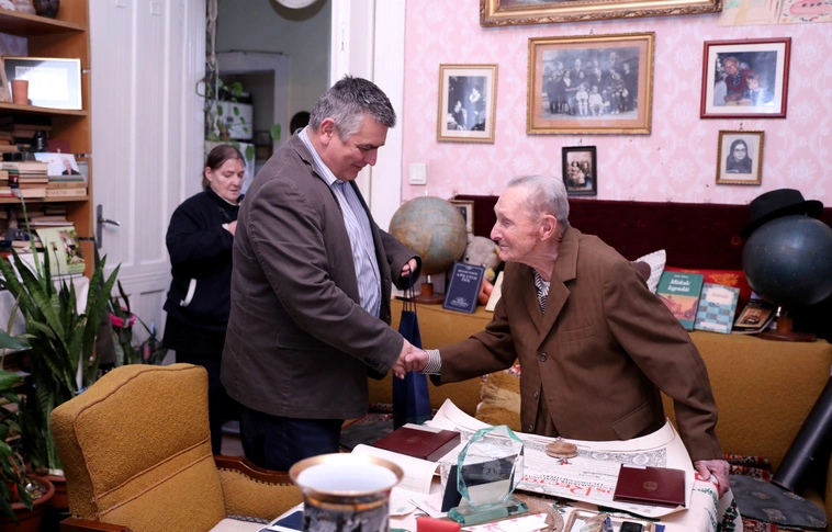 Kilencvenötödik születésnapja alkalmából köszöntötte miskolci otthonában Lóczi Géza Gergelyt Mokrai Mihály önkormányzati képviselő kedden délután.