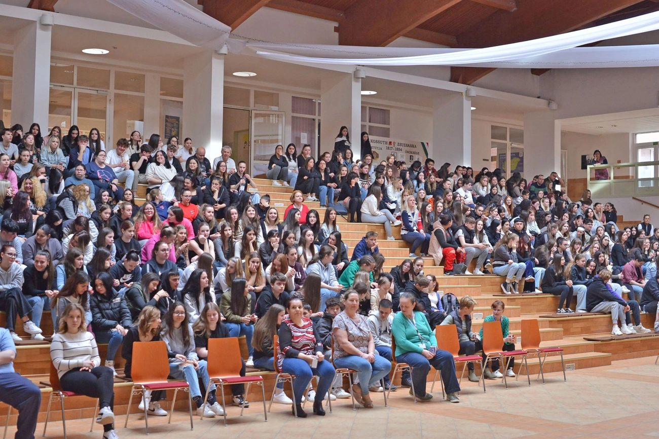 - Nagyon örülök neki, hogy ezen az egésznapos rendezvényen a tanulóink többsége - akiknek nincs ma gyakorlati foglalkozásuk -, mintegy kétszáz-kétszázötven fő, részt vehet, és mi a házigazdái lehetünk. Úgy gondoljuk ezek a témák ma nagyon aktuálisak, amikor az online térben rengeteg interakció történik a gyerekek és az online tér többi szereplője között. Fontosnak gondoljuk, hogy ebben a témában is oktatást kapjanak - fogalmazott Barna Krisztina, a Miskolci Egyetem Ferenczi Sándor Egészségügyi Technikum szakirányú oktatásért felelős intézményvezető helyettese.
