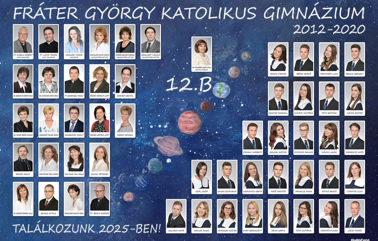 A miskolci végzősöket bemutató sorozatunkban a Fráter György Katolikus Gimnázium végzős, 12.B-s osztályának tablója.