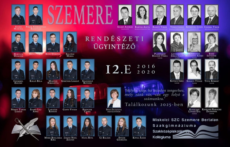 A miskolci végzősöket bemutató sorozatunkban a Miskolci Szakképzési Centrum Szemere Bertalan Szakgimnáziuma, Szakközépiskolája és Kollégiuma végzős, 12.E-s osztályának tablója.