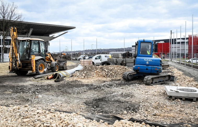 Akik a diósgyőri stadion és az aréna felé gyalogolnak, építkezést látnak.