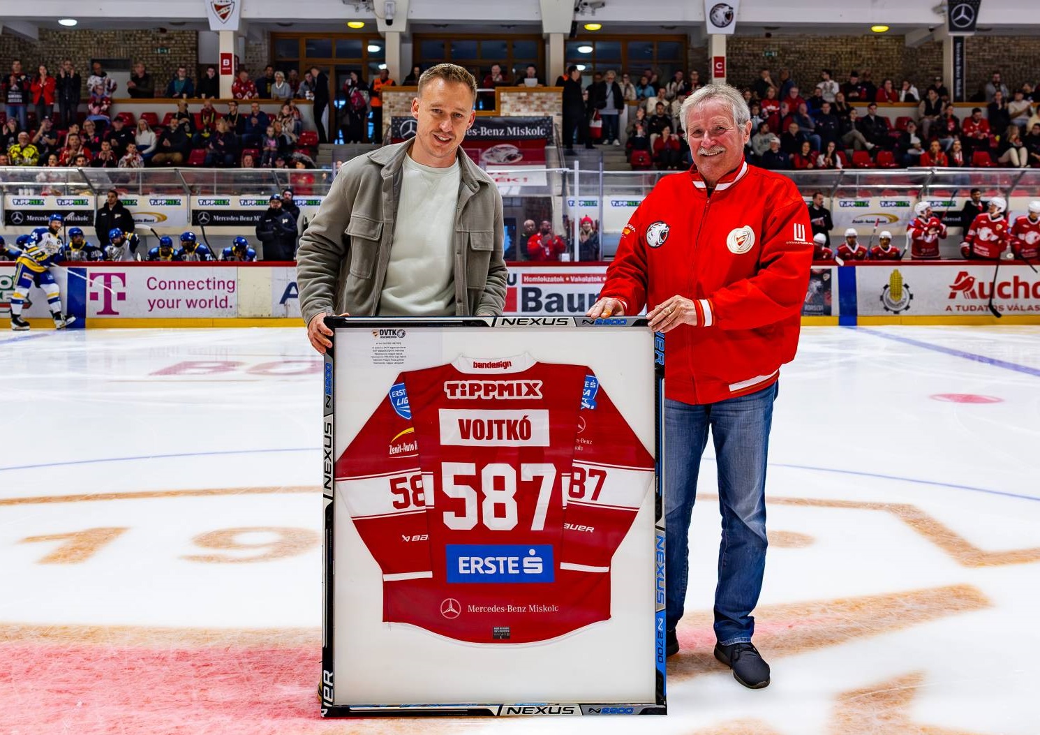 Az Erste liga 2. fordulója keretében rendezett DVTK Jegesmedvék – Corona Brasov találkozó előtt az aktív hokitól visszavonult Votjkó Mátyást Egri István klubelnök köszöntötte és ajándékozta meg egy bekeretezett mezzel. A kiváló védő 587 találkozón öltötte magára a Macik felsőjét.