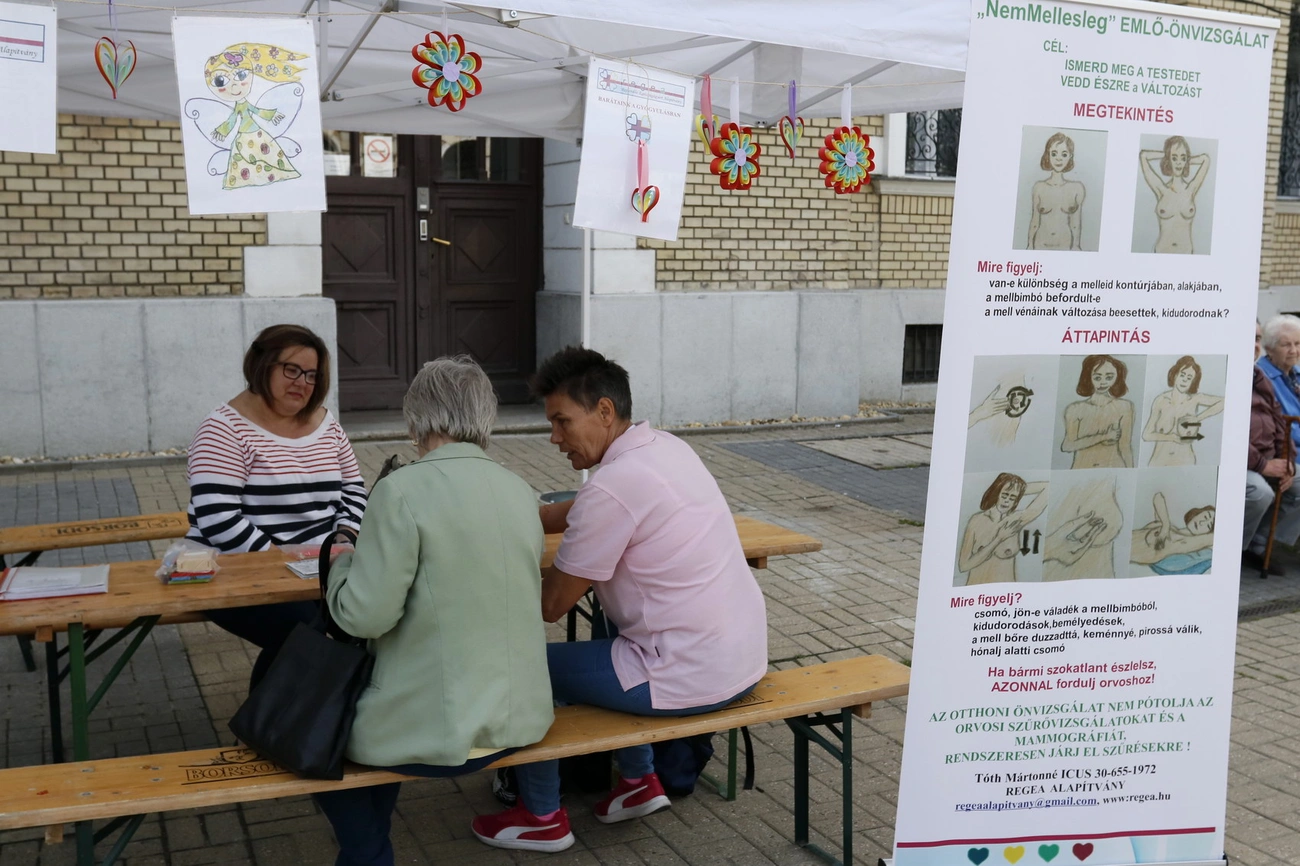 A hölgyeket felvilágosítással és tanácsadással is várták a Regionális Egészségügyért Alapítvány „Női sátrában”, ahol tippeket kaphattak a hatékony önvizsgálathoz. Tóth Mártonné, az alapítvány sportnagykövete és önkéntese elmondta, ő maga is érintett az emlőrák betegség miatt. – Fontosnak tartjuk, hogy felhívjuk a figyelmet a szűréseken való részvételre. Szerintünk mindenkinek meg kell tanulnia az önvizsgálatot, vizsgálatot, akár férfi, akár nő az illető. Hiszen sok sorstársamnak éppen a párja vette észre az elváltozást, tehát a férfiak is felelősséggel tartoznak a nőkért. Minél korábban észrevesszük ugyanis a daganatot, annál biztosabb és gyorsabb a gyógyulás – összegezte Tóth Mártonné, aki elmondta, alapítványuk megtalálható a Központi Kórház Sugárterápiás Intézetében, ahol klinikai szakpszichológusuk minden pénteken tart foglalkozást.