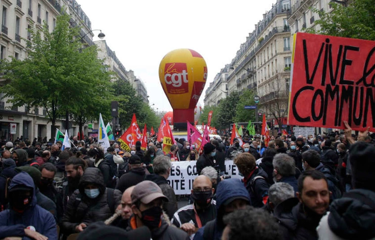 Franciaországban több mint százezren vonultak utcára szombaton a szakszervezetek felhívására a munka ünnepén a koronavírus-járvány miatti korlátozások ellenére.